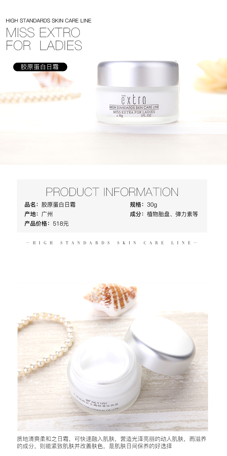 ②蕴含高单位(10%)胶原蛋白,具有保湿润滑果,可增加皮肤水合能力,防止皱纹。有增加肌肤弹性及肌肤抵抗力。能即时的完全吸收,为日间保养的佳选择。