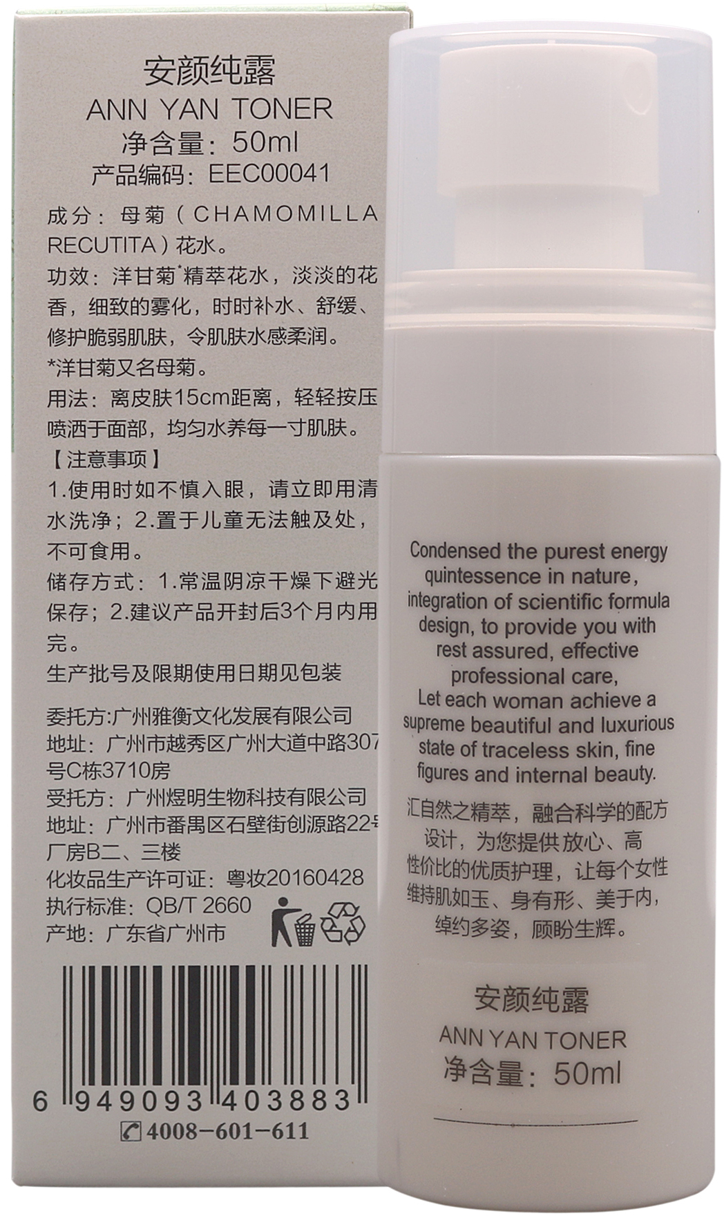 产品功效:洋甘菊精萃花水,淡淡的花香,细致的雾化,时时补水、舒缓、修护脆弱的肌肤,令肌肤水感柔润。