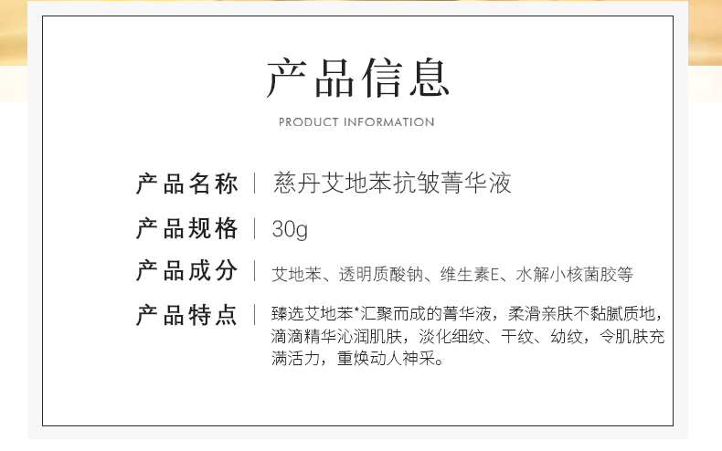 慈丹 艾地苯抗皱御肤蜜100g 水润紧致,抗皱抗氧化,嫩滑焕亮,淡化细纹/干纹/...