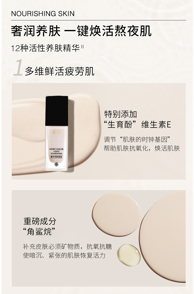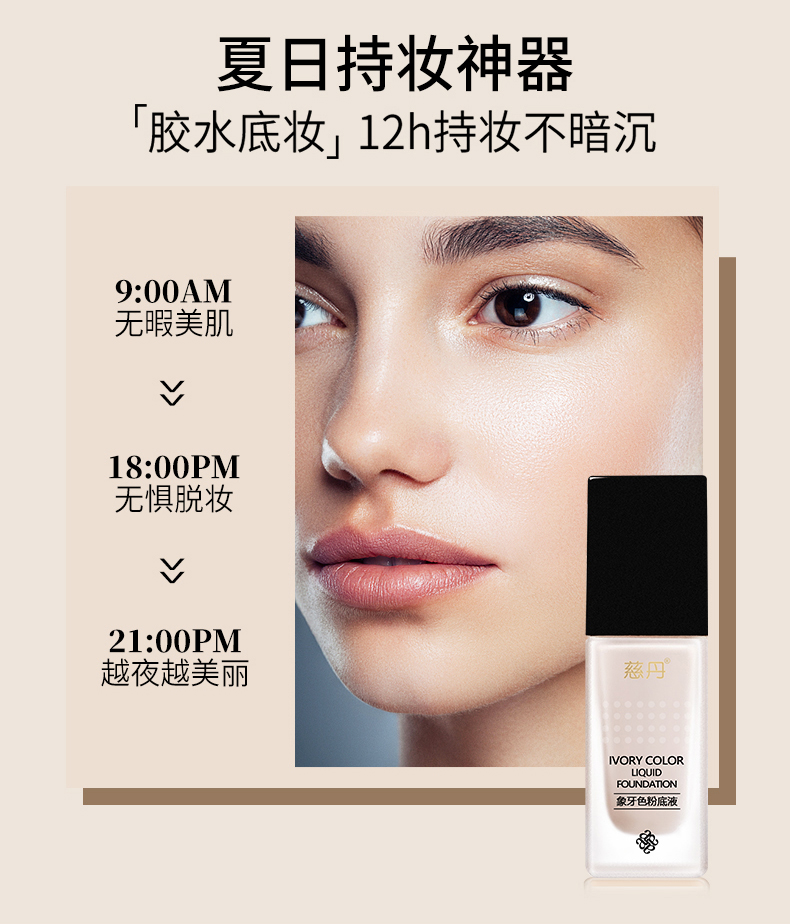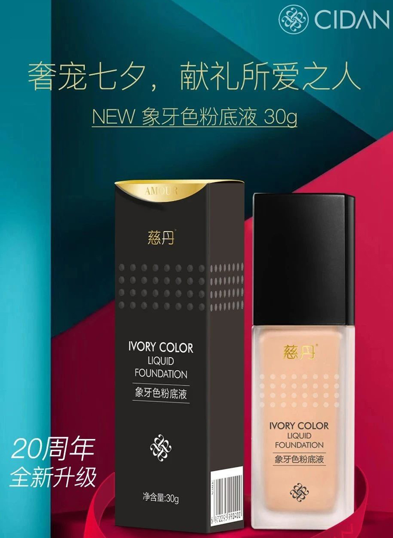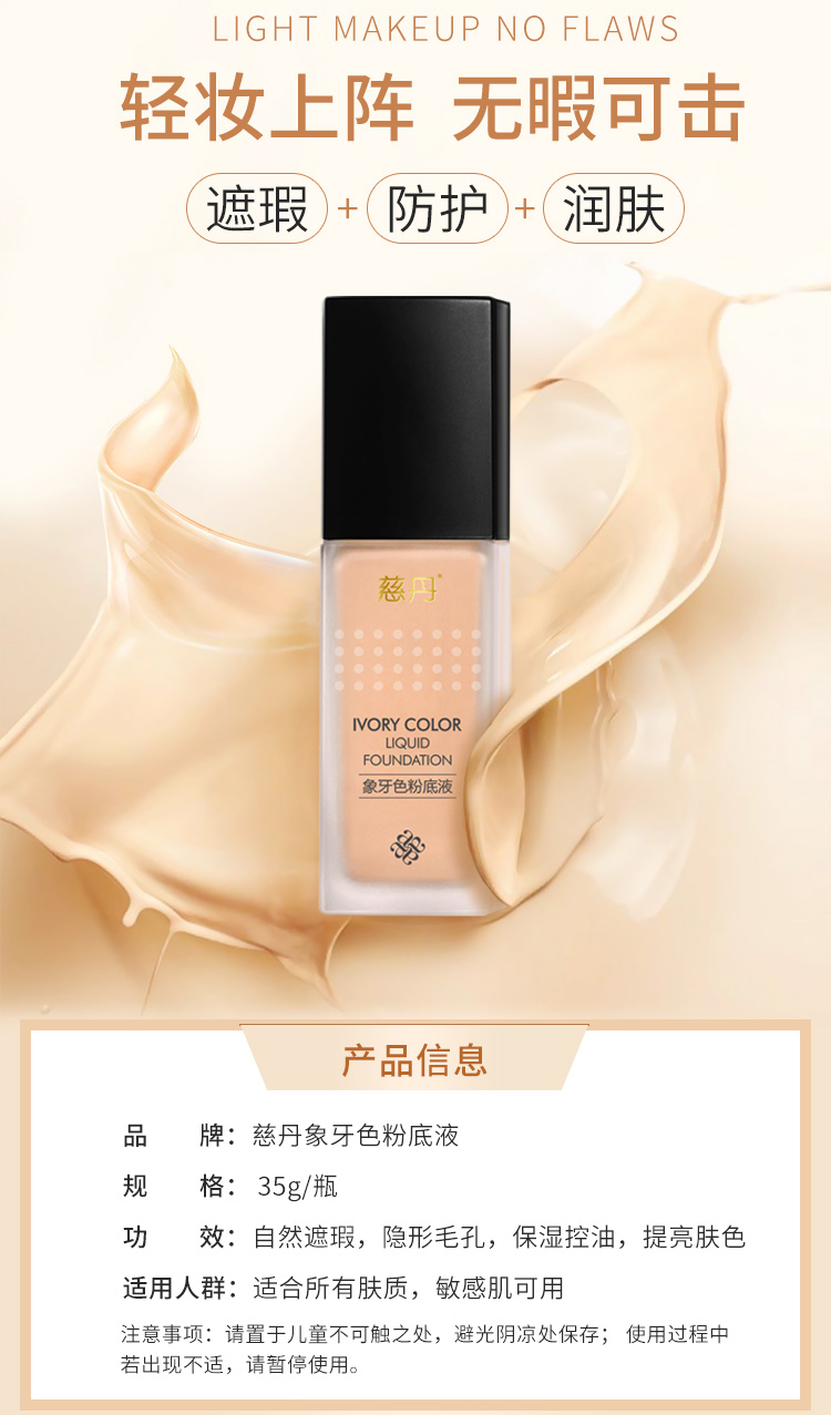 慈丹 象牙色粉底液30g(适合偏红/苍白/偏黄肌肤)隔离遮瑕、修颜亮白、提亮肤色、水润服帖