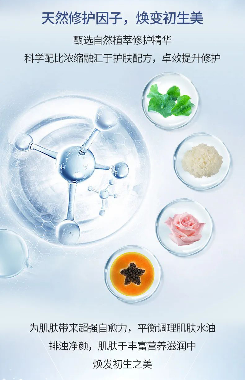 补充肌肤营养所需,抗氧化,柔润焕亮,帮助促进肌肤微循环,愈颜排浊,细腻嫩肤,令肌肤焕然新生,更嘭弹、通透、平滑