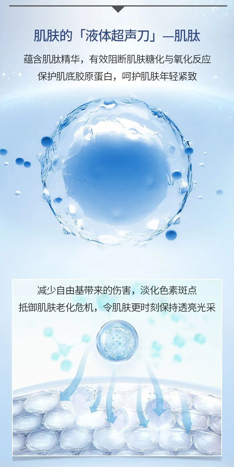 充分滋养肌肤,锁住水分,补进养分,提升肌肤抵御力,淡化细纹斑印,令肌肤持久保持Q弹水嫩,滢润光泽