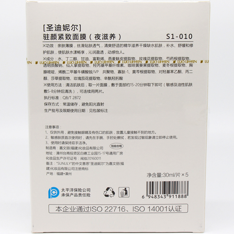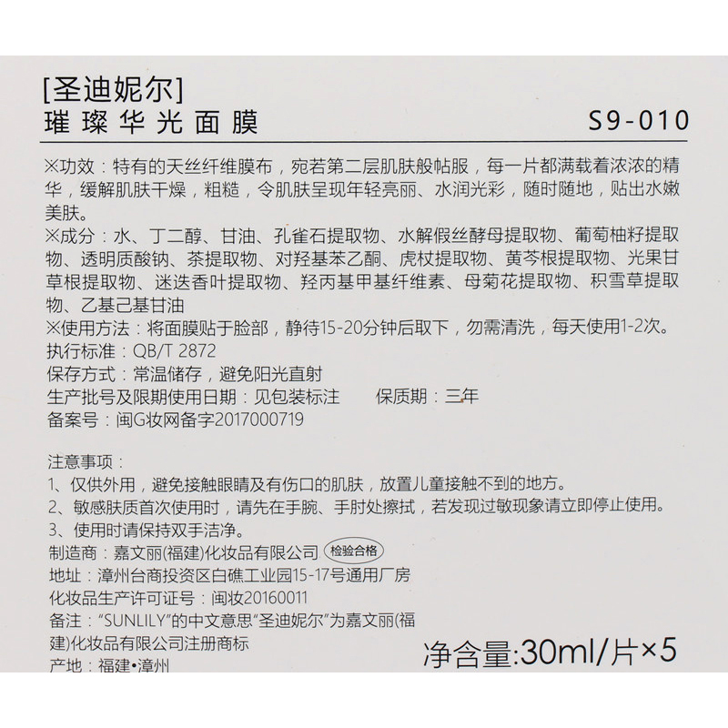 圣迪妮尔 驻颜紧致面膜30ml*5片 天丝纤维、轻柔温和、满载精华、深彻补水、弹润透亮