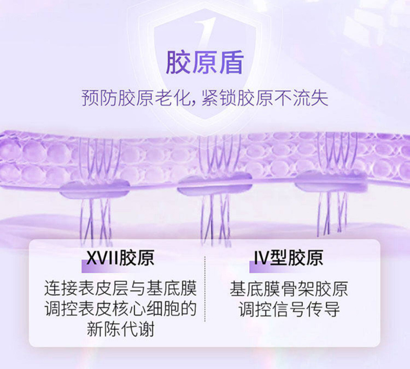 1表皮层:「老化阴晴表」体现肌肤纹路痕迹、健康状态; 2基底膜:「皮肉双面胶」紧密粘合表皮层与真皮层; 3真皮层:「胶原工厂」分泌合成支撑、弹性等年轻胶原。