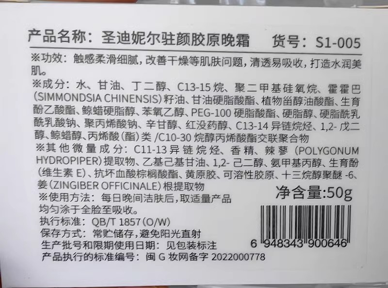 圣迪妮尔 驻颜紧致胶原晚霜50g 改善干燥、细纹、暗沉皮肤,令肌肤紧致平滑、细腻柔润