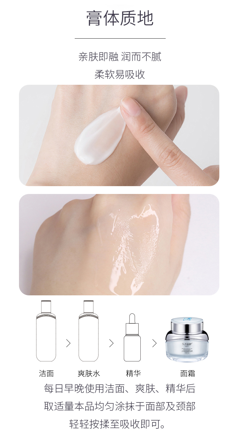 甄选多植物等萃取液成分,修护滋养,焕亮紧致,令肌肤深澈润泽、细腻柔嫩