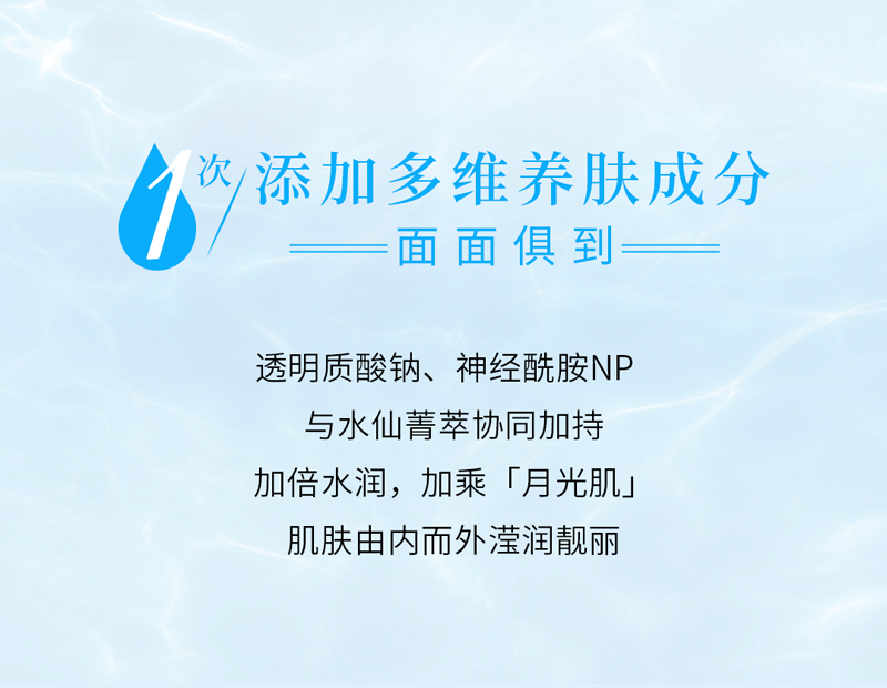 含有植物取精华,搭配多种透明质酸钠,沁润肌肤,补充肌肤水分,令肌肤靓丽水嫩