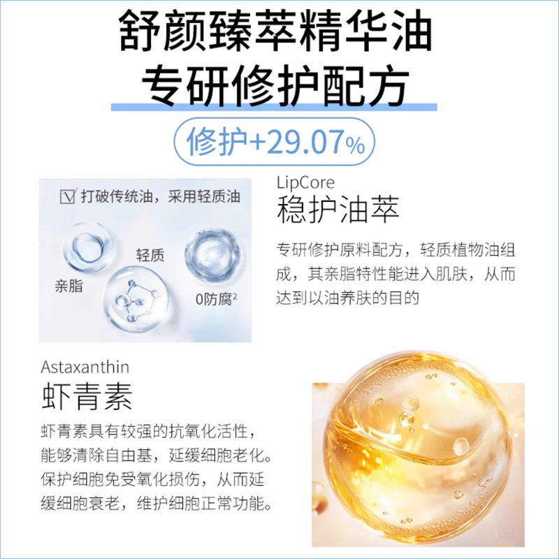 宜人的气味,丝滑的肤感,具修护、紧致、舒缓功效,可改善细纹,令肌肤靓丽水润有光彩