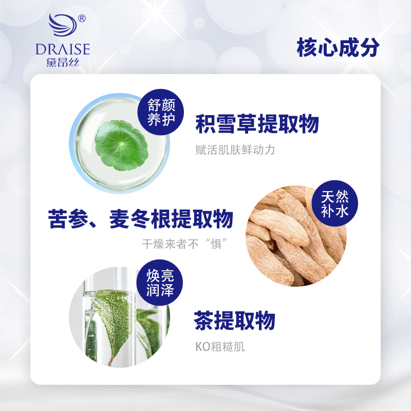 特有的保湿成分,给皮肤提供充足的营养和水分,减缓皮肤细纹的生成,有效提高肌肤的活力与健康,令肌肤水润光泽、紧实嫩滑