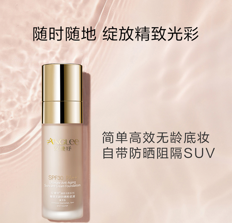 安婕妤 臻美无龄防晒粉底液40ml(象牙白)SPF30PA++ 修饰毛孔粗大与肤色不均、遮瑕、定妆、养肤、提拉、白嫩、保湿