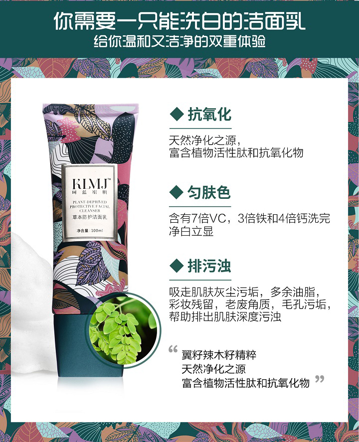 珂蓝蜜肌 平衡洁面乳100ml(草本防护洁面乳)泡沫绵密、深层清洁、提亮肤色、排浊净化