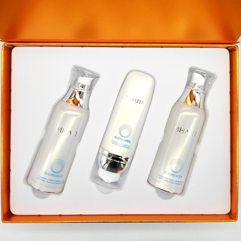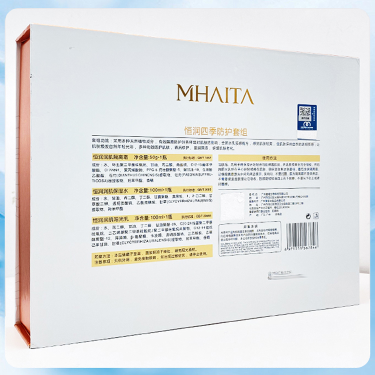 1.日夜美肌隔离霜50g 2.清莹美肌保湿水100ml 3.清莹美肌阳光乳100ml (有防护隔离功能,防御外界对肌肤的伤害,防止暴晒引起的皮肤晒黑以及晒伤老化)