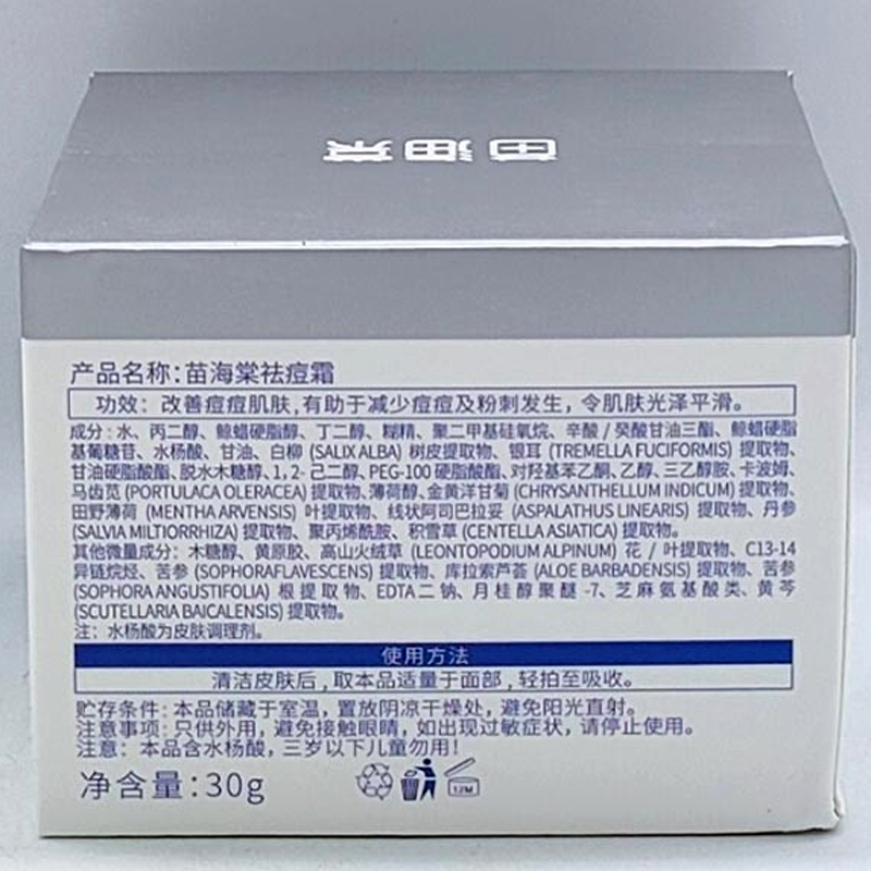 苗海棠 祛痘霜30g(净痘舒颜霜)平衡油脂,抑制暗疮痘痘爆发,去除粉刺/痘印,收缩毛孔,愈合创面