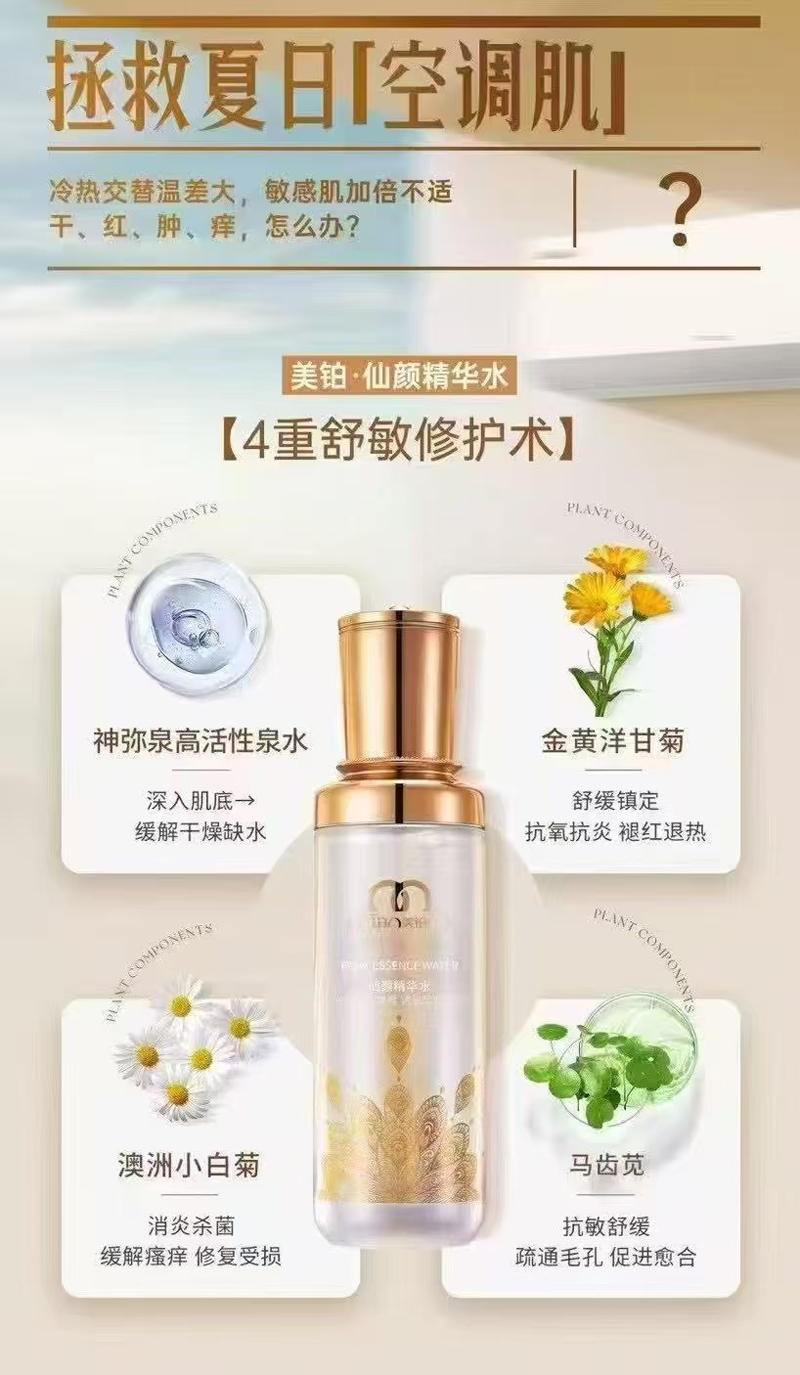 洁面后取本品在距离脸部肌肤20-30厘米处,轻轻喷洒在面部,待自然吸收或者轻轻拍打,让产品充分吸收。每天可多次使用