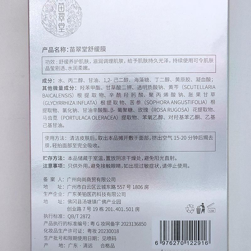 苗翠堂 植萃舒缓瓷肌膜35g*6片 润滑滋养皮肤,提亮并均匀肤色,持久光泽,水润柔嫩