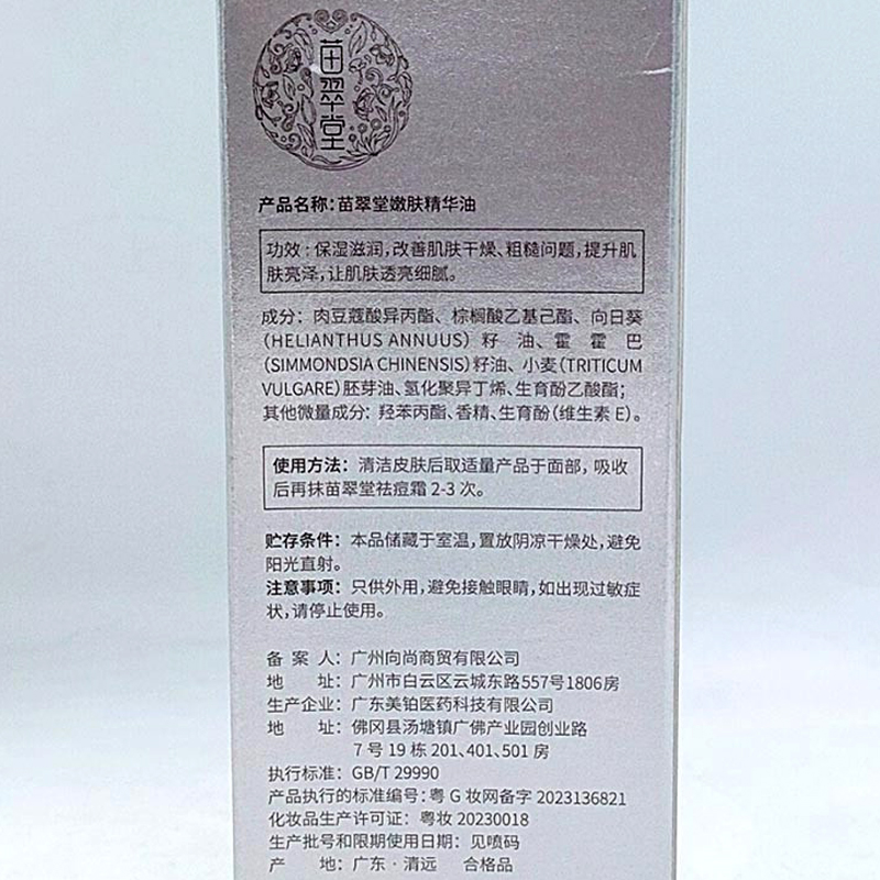苗翠堂 植萃嫩肤精华油30ml 保湿滋润、光滑嫩肤、提亮肤色