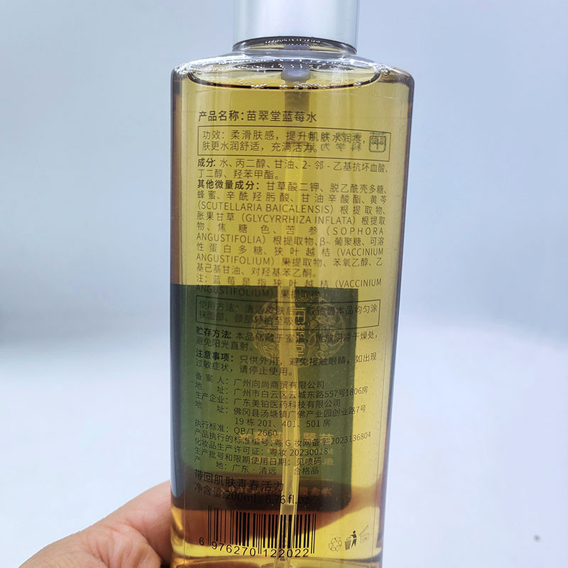 苗翠堂 蓝莓小分子水200ml 二次清洁肌肤,提亮肤色,紧致毛孔,水分透亮