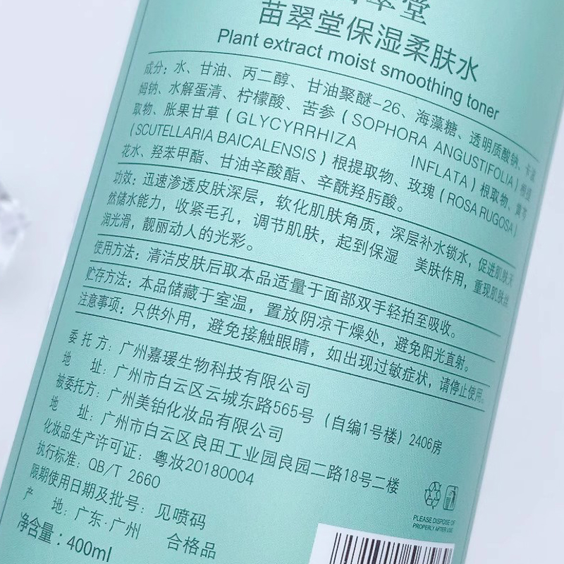 苗翠堂 保湿柔肤水400ml 软化角质,补水锁水,保湿美肤,收紧毛孔,丝润光滑