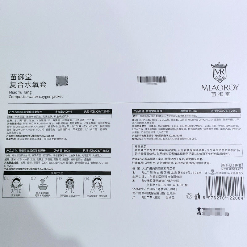 苗御堂 复合水氧3件套 (肌底液30ml+柔肤水400ml+软膜粉500g)补水保湿,滋润饱满,柔滑剔透