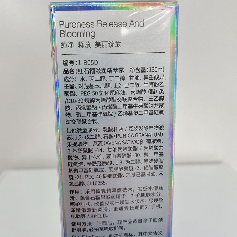 采用微乳精萃露技术,触感水漾丝滑;蕴含石榴果滋润精华,补充肌肤水分,呵护肌肤,改善皮肤干燥缺水状态,尽现盈泽嫩滑清新柔滑;更适宜长期面对手机、电脑等人群使用