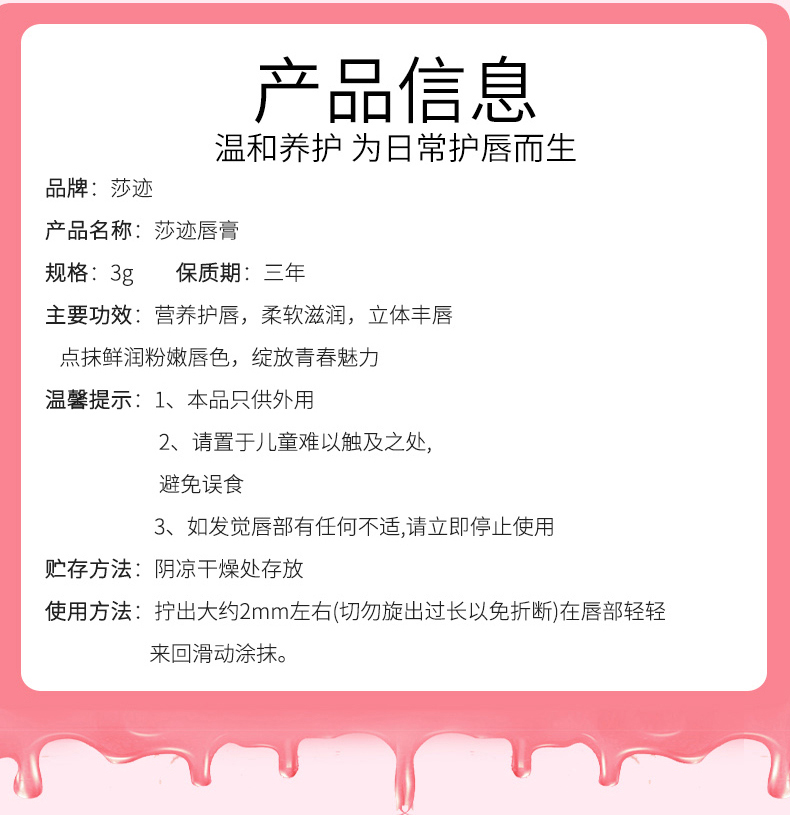营养护唇,柔软滋润,立体丰唇,点抹鲜润粉嫩唇色,绽放青春魅力