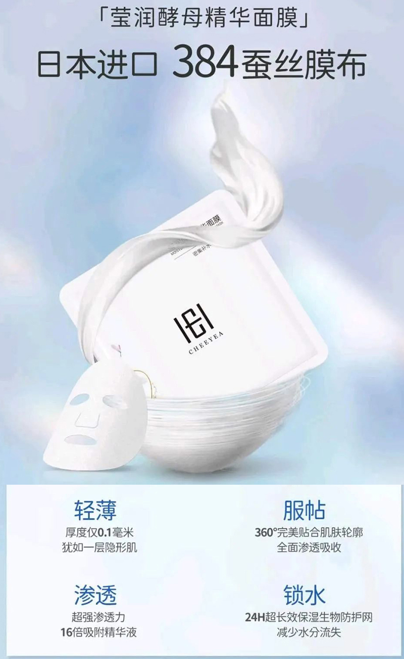 1.轻薄:厚度仅0.1毫米犹如一层隐形肌 2.服帖:360°完美贴合肌肤轮廓渗透吸收 3.渗透:渗透力16倍吸附精华液 4.锁水:24H超长效保湿生物防护网减少水分流失。蕴含酵母精华成分,搭配多种植萃精华,锁水保湿,润泽肌肤,让肌肤饱满透润,光滑细腻
