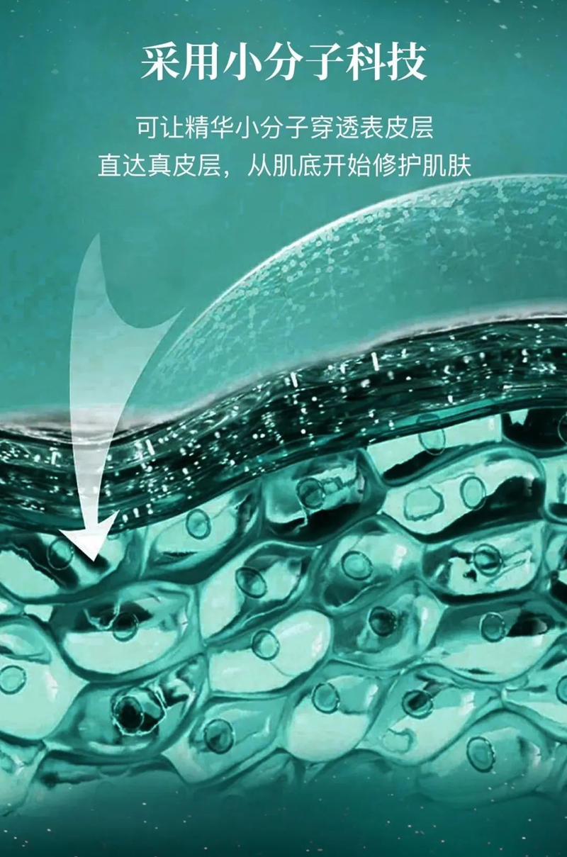 采用小分子科技 ,可让精华小分子穿透表皮层,直达真皮层,从肌底开始修护肌肤;轻盈丝缎质地,深入渗透,改善肌底自我修护,加速肌底新生,更促生胶原