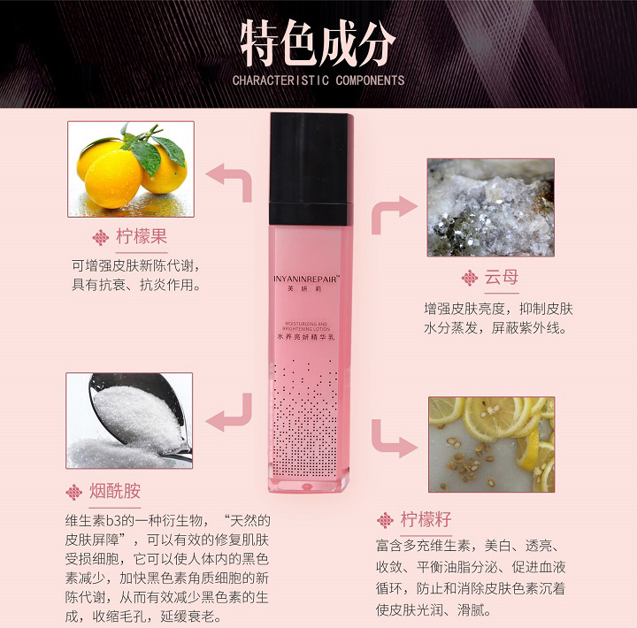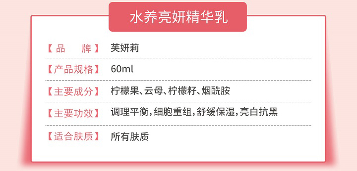 多种天然植物精粹、清爽质地、易于吸收、深润修护、紧致肌肤、提亮保湿、令肌肤透现光彩活力