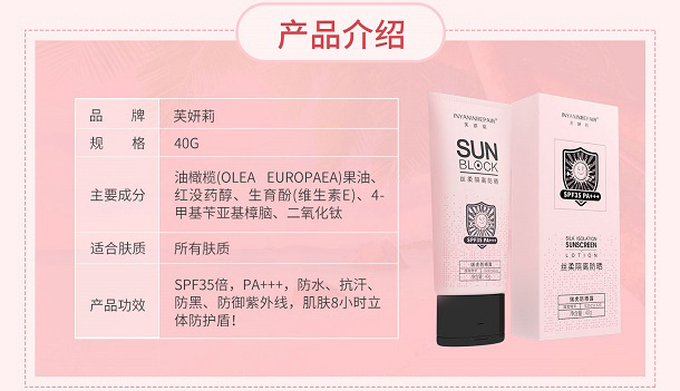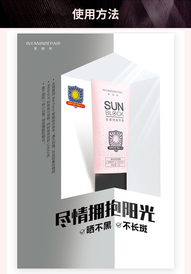丝柔隔离防晒40gSPF35倍,PA+++,防水、抗汗、防黑、防御紫外线,肌肤8小时立体防护盾!