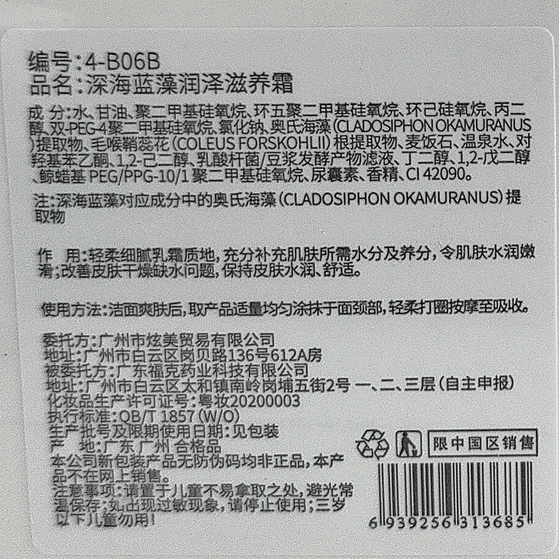 韩姿妤 深海蓝藻润泽滋养霜50g 补充水分及养分、水润嫩滑、改善皮肤干燥缺水问题