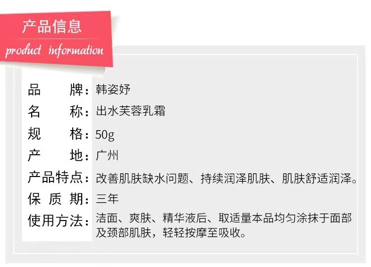 韩姿妤 出水芙蓉乳霜50g 柔软舒适、润滑肌肤、改善干纹/粗糙/黯哑肌肤问题