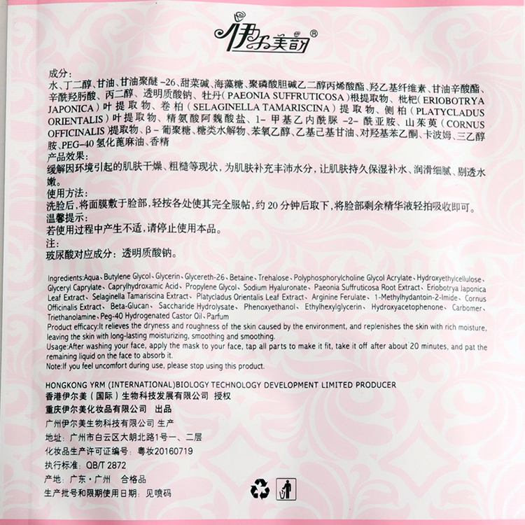 伊尔美韵 玻尿酸补水面膜25ml*8片 改善干燥/粗糙肌肤,持久保湿,润滑细腻,剔透水嫩