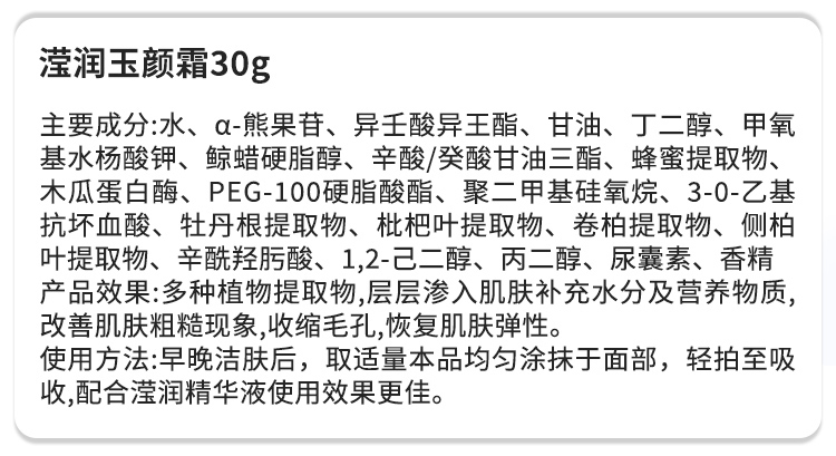 伊尔娜美 滢润玉颜霜30g 补充水分及营养,改善粗糙、干燥肌肤,收缩毛孔,恢复弹性