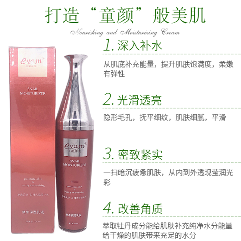 伊尔娜美 蜗牛保湿乳液100ml 质地弹润,水感柔滑,持久保湿补水,紧实肌肤,弹力水润