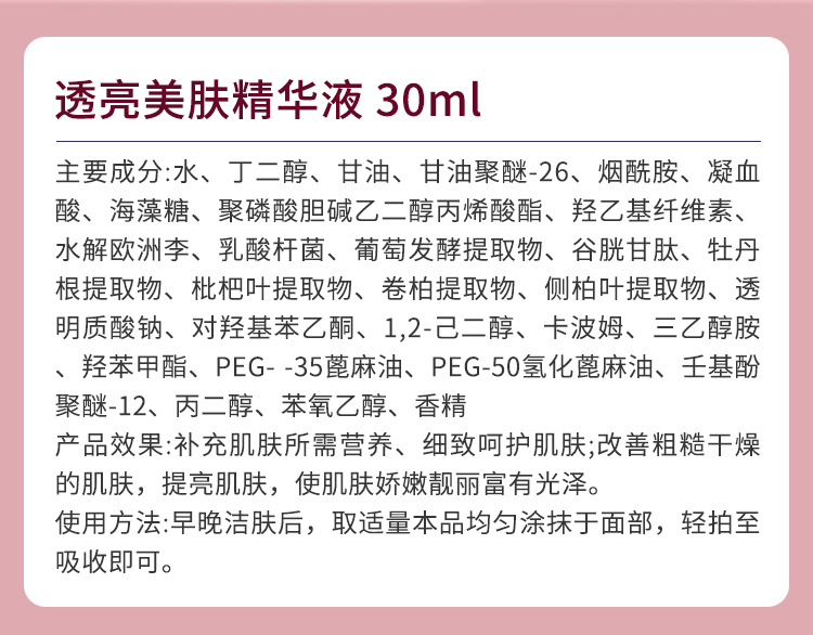 伊尔娜美 透亮美肤精华液30ml 补充营养,细致呵护,改善粗糙干燥,提亮肤色,娇嫩靓丽光泽