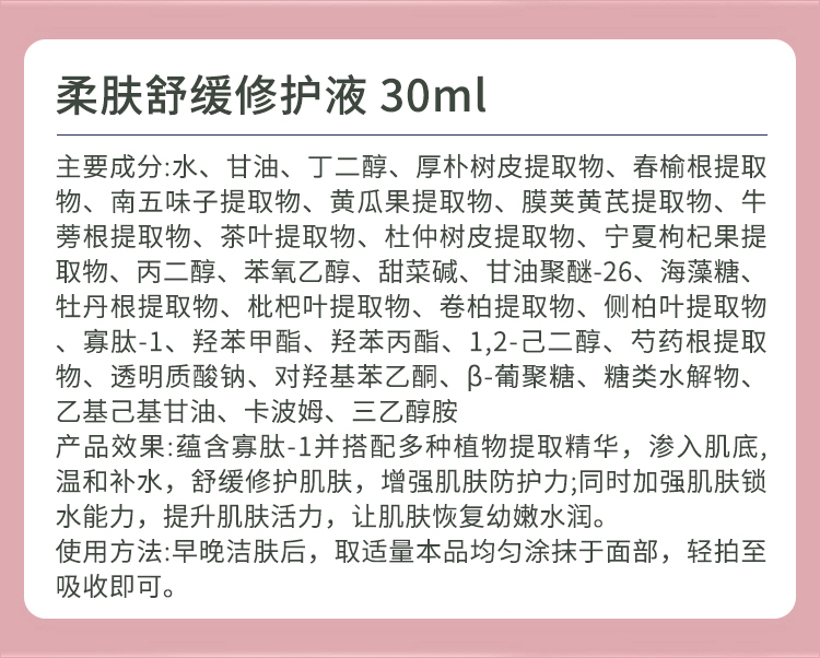 伊尔娜美 安肌润颜柔肤液30ml 舒缓修护红敏,渗透肌底,密集修护,有效褪红,细腻嫩滑