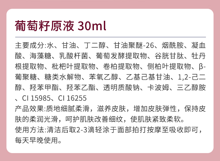 伊尔娜美 葡萄籽原生液30ml 细腻柔滑,滋润光滑,增加弹性,改善细纹,紧致柔软