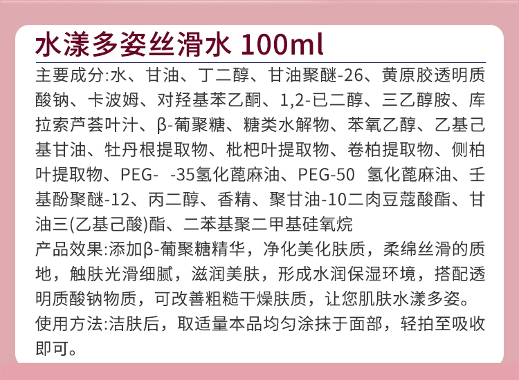 伊尔娜美 水漾多姿丝滑水100ml 柔绵丝滑质地,光滑细腻,滋润美肤,改善粗糙干燥肤质