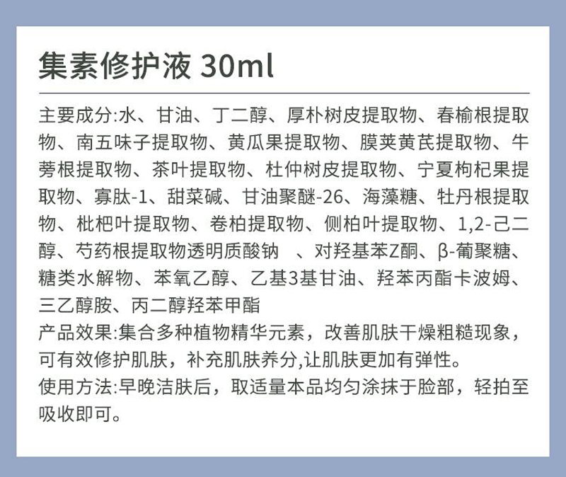 蝶妮王妃 安肌润颜柔肤液30ml(集素修护液)集合多种精华元素,改善干燥粗糙,补充肌肤养分,恢复水嫩状态