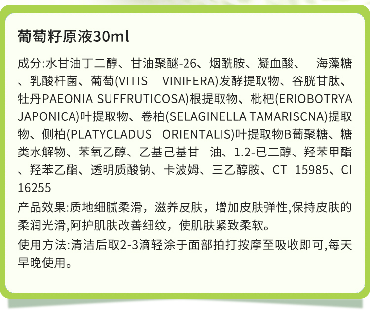 蒂曼莱儿 葡萄籽原生液30ml 细腻柔滑,滋润光滑,增加弹性,改善细纹,紧致柔软