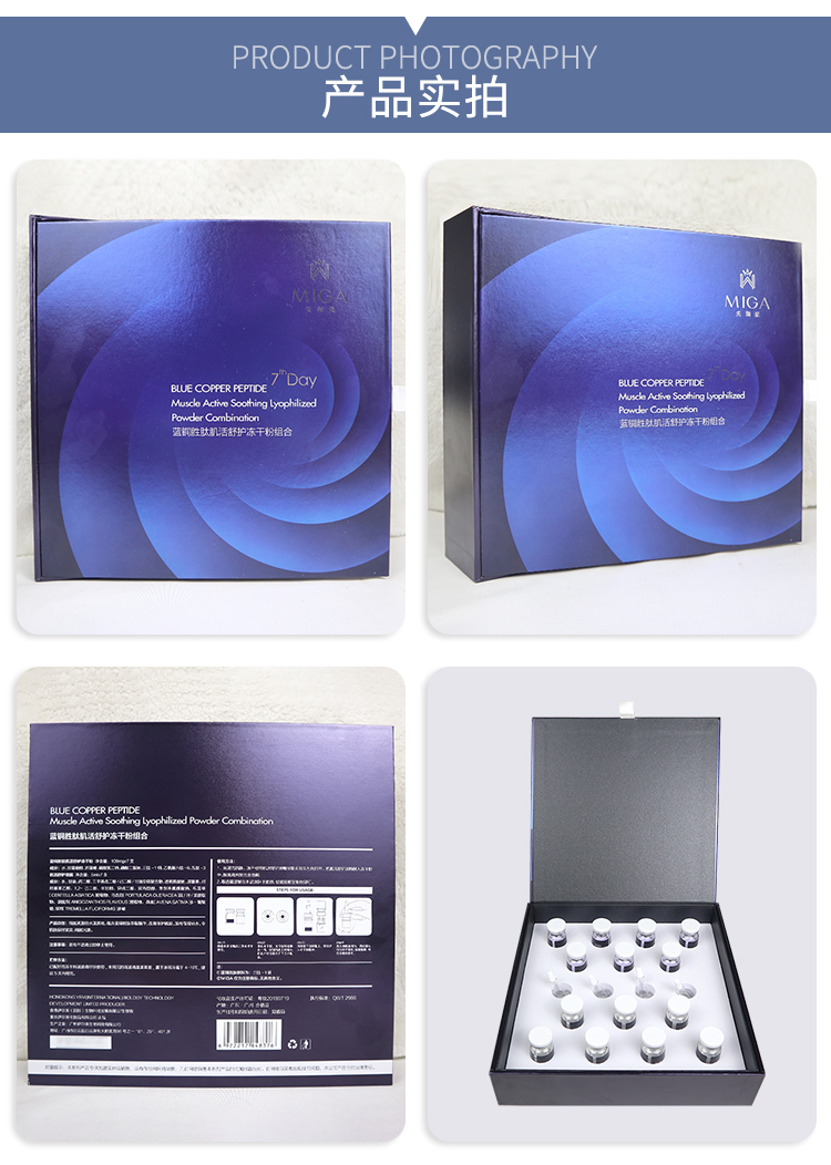 (冻干粉100mg+溶媒5ml)*7支。细腻柔滑的水漾质地,蕴含蓝铜胜肽萃取精华,改善修护肌肤,温和保湿补水,令肌肤保持紧实、细腻光滑