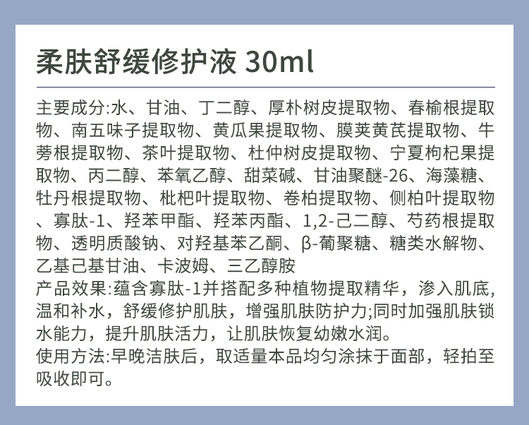 美珈豪 安肌润颜柔肤液30ml 舒缓修护红敏,渗透肌底,密集修护,有效褪红,细腻嫩滑