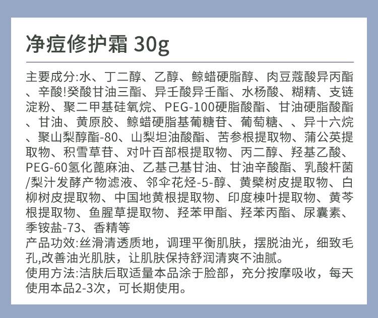 超越无限 净痘修护霜30g 均衡水油,减少油光,细致毛孔,舒缓修护痘痘、粗糙肌肤