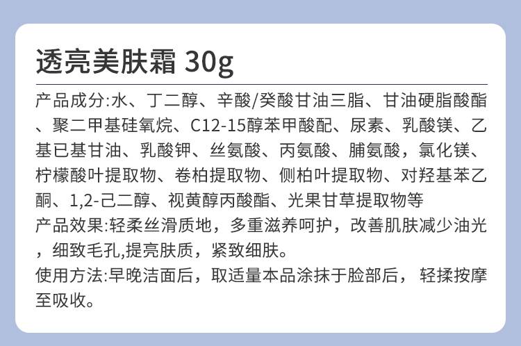 超越无限 透亮美肤霜30g透亮美肤霜30g(淡黯美肤霜)改善黯哑/粗糙/干燥肌肤,抑制黑黄色素,提亮肤色