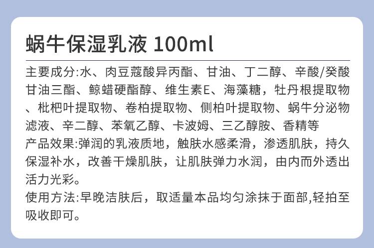 超越无限 蜗牛保湿乳液100ml 质地弹润,水感柔滑,持久保湿补水,紧实肌肤,弹力水润