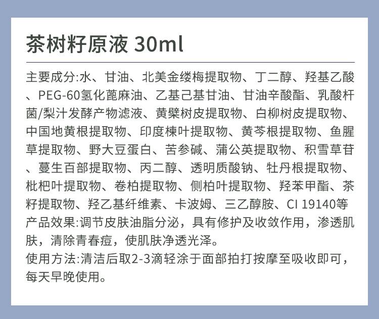超越无限 茶树籽原生液30ml 调节皮肤油脂分泌,修护及收敛,改善青春痘、粉刺,净透光泽