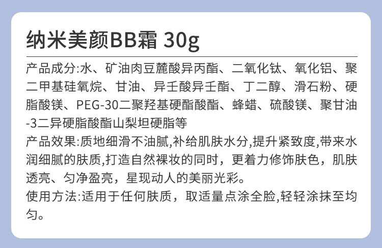 超越无限 纳米美颜BB霜30g 打造自然裸妆,修饰肤色,匀净盈亮,水润细腻,提升紧致度