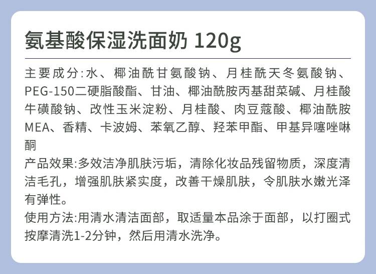 超越无限 氨基酸保湿洗面奶120ml 洁净污垢,改善干燥,水嫩光泽,紧实弹性