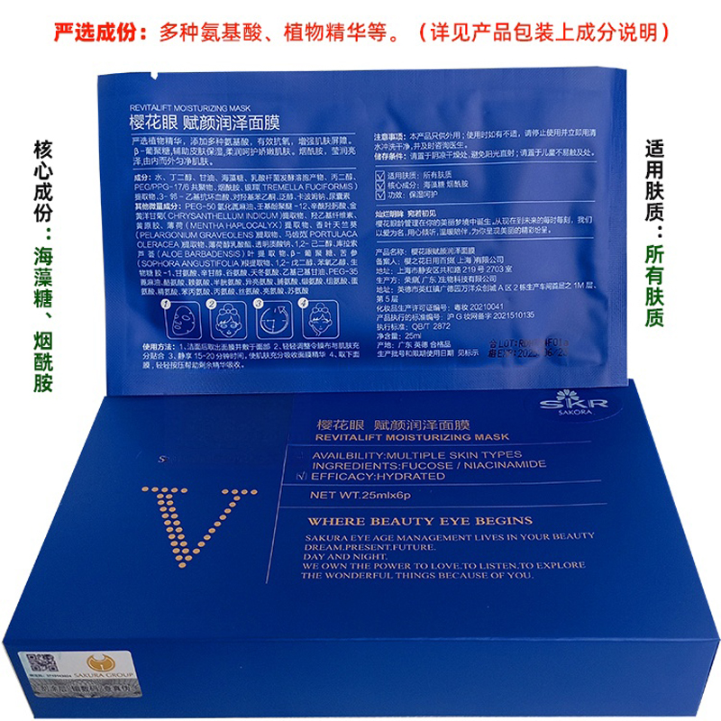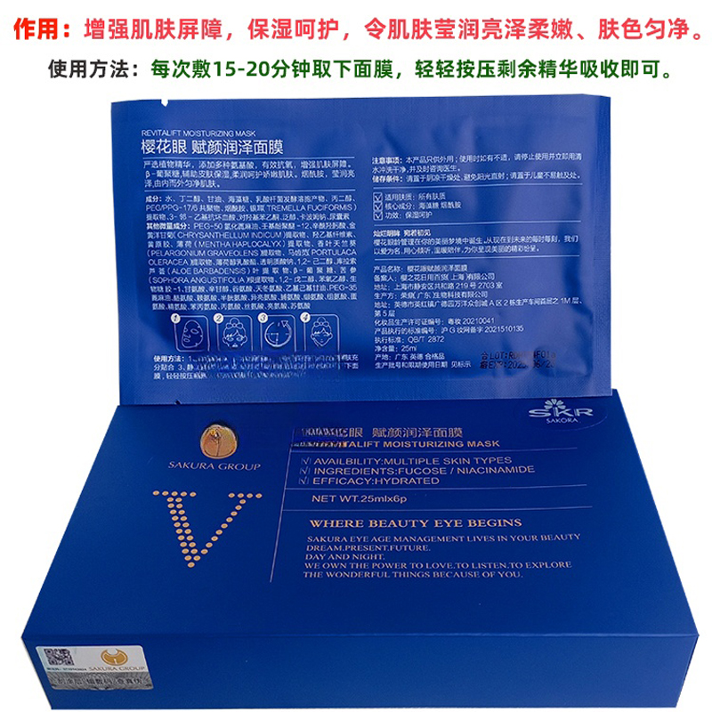樱花眼护 赋颜润泽面贴膜6片/盒 抗氧化、增加肌肤屏障、莹润亮泽、柔润保湿