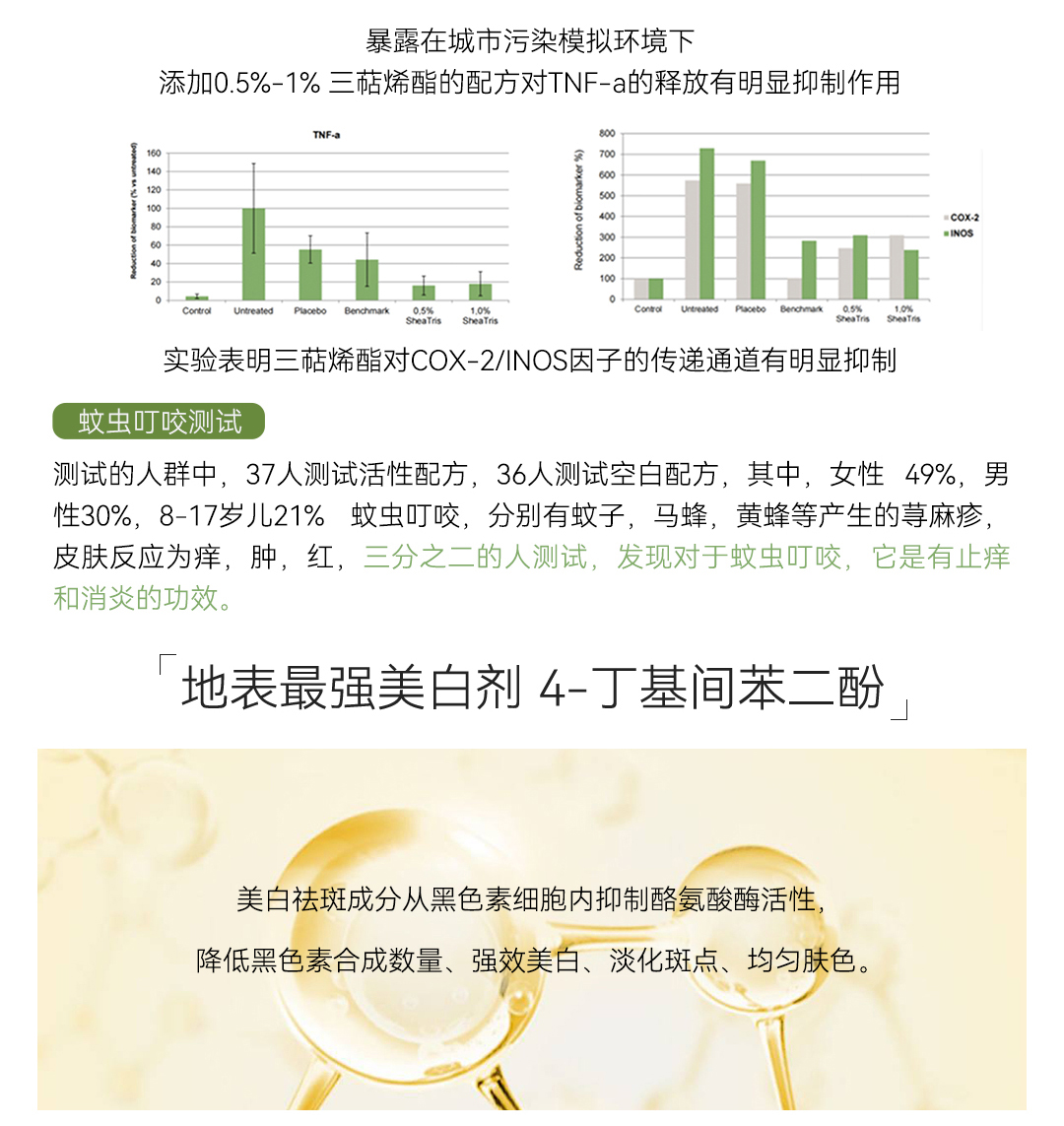 胞内抑黑-滴焕新!增强皮肤屏障,促进皮肤新生,保护皮肤。对抗老化和环境压力。”地表第二强”美.白祛.斑成分从黑色素肌底内抑制酪氨酸酶活性降低黑色素合成数量、有效美.白、淡化.斑点、均匀肤色